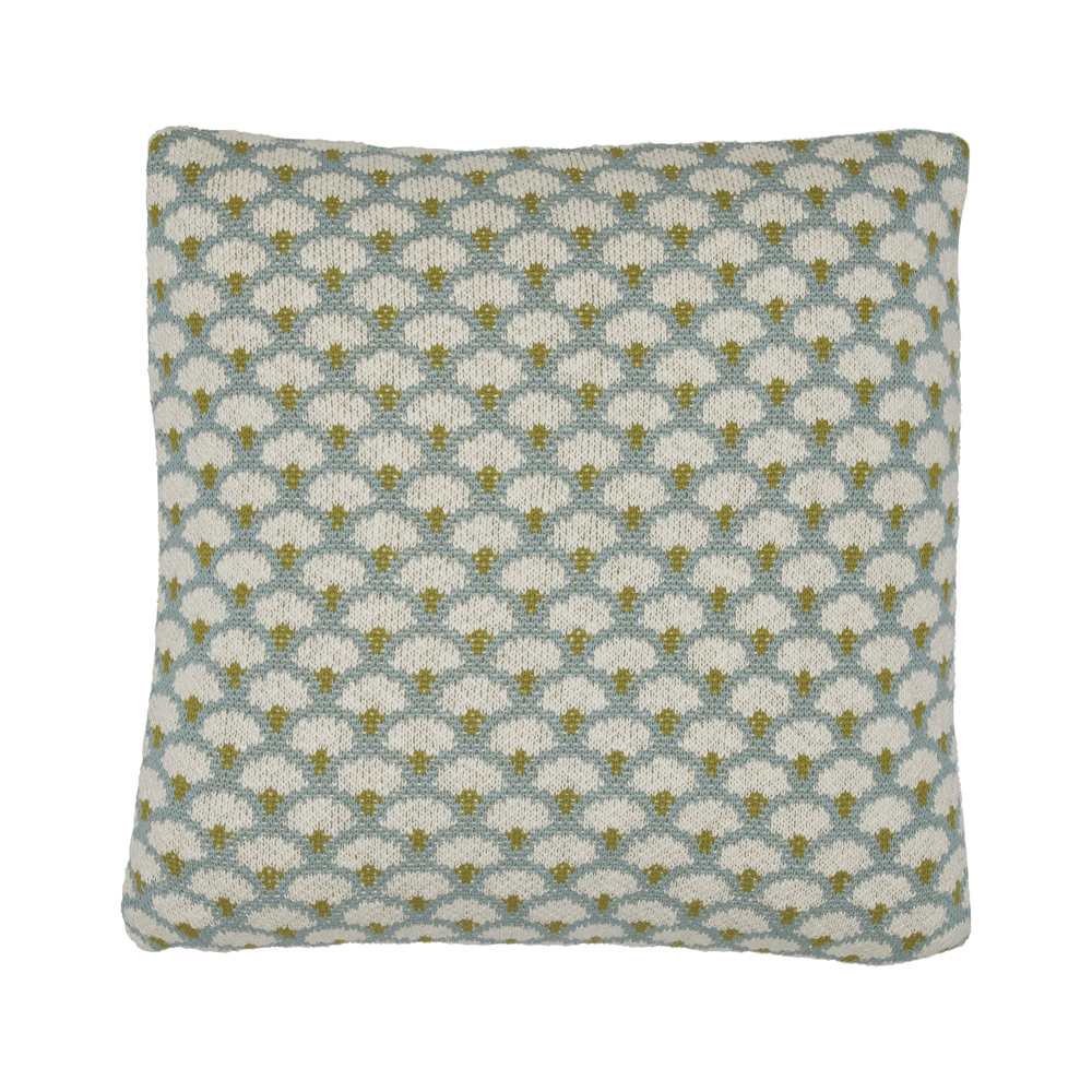 Dieses samtweiche und fair produzierte Strickkissen wird in einem Familienbetrieb in Nordindien hergestellt.